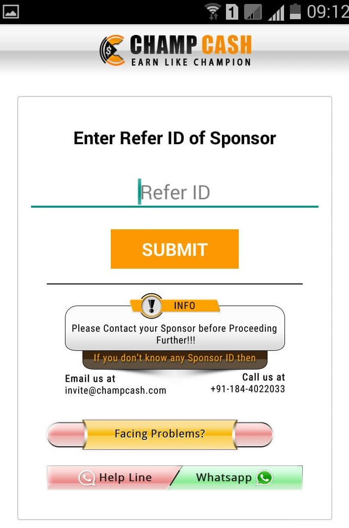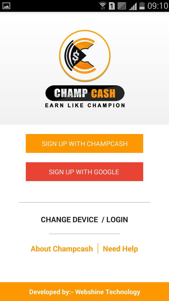 SIGN UP WITH CHAMPCASH ক্লিক করুন