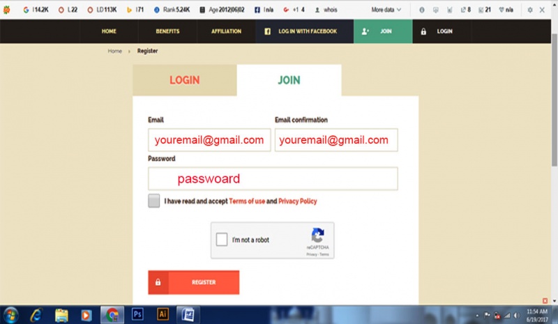 তার পর ইমেইল এর জায়গায় ইমেইল আইডি এবং পাসওয়াড এই ফ্রমটি পুরণ করে রেজিস্টার বাটনে ক্লিক করুন। নিচের মত আসবে।