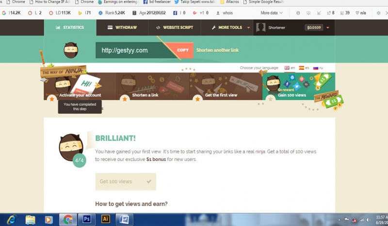 এর পর কপি লেখাতে ক্লিক করে লিংকটি কপি করুন,কপি করা লিংকটি ফেসবুক,টুইটার,হোয়াটসএপস,গুগল ইত্যাদি সাইটে সবার সাথে শেয়ার করে দিন শেয়ার করে দিন। যত খুশি তত শেয়ার করুন। যদি আপনার শেয়ার করা লিংকটিতে কেউ ক্লিক করে তাহলে আপনার ইনকাম হতে থাকবে।