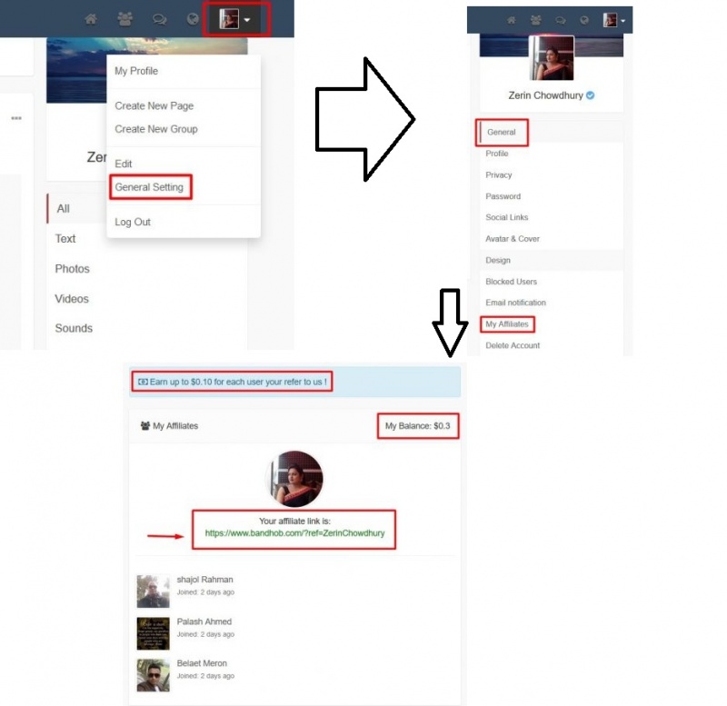 পরে এক বন্ধু জানালো বান্ধব ডটকম থেকে অ্যাফিলিয়েট লিঙ্কের মাধ্যমে টাকা আয় করা যায়। এবং নিজে ট্রাই করে দেখলাম সত্যিই হচ্ছে! তাহলে দেখা যাক কীভাবে বান্ধব ডটকম থেকে আপনি টাকা আয় করতে পারেন। প্রথমে এই লিঙ্কে গিয়ে সাইন আপ করুন। এটি আমার অ্যাফিলিয়েট লিঙ্ক (https://www.bandhob.com/jkamal)। আপনি এখানে সাইন আপ করলে আমি ১০ সেন্টের মতো পাবো। মানে প্রায় ১০টাকার কাছাকাছি। এ বিষয়ে আরও জানতে পড়ে নিতে পারেন এই টিউনটি।
