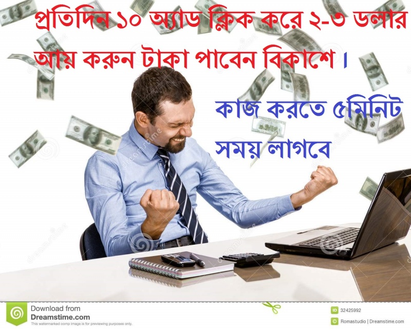 কাজ হল কিছু ব্যানার ওয়েব আর ভিডিও লিংক ভিসিট করা।সময় লাগবে মাত্র ৫ মিনিট আয় কত হবে?প্রায় ১ বেশি ডলার প্রতিদিন।that means এই সাইট এ কাজ করলে মাসিক income হবে প্রায় ২০০০-৬০০০ বেশি