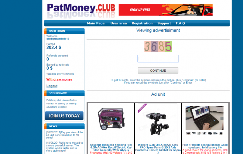 আমি আজকে একটি সাইট নিয়ে আপনাদের সাথে শেয়ার করব যা প্রতিদিন প্রায় 450 ডলার আয় করা যায়, সাইটির নাম এখানে ক্লিক করে Register করুন যা একদম খুব সহজ রিজিষ্টার ঠিক হলেই আপনার ইমেইলে একটি ভেরিভাই লিং যাবে এবার ভেরিভাই সম্পুর্ন করুন ঠিক এবার কাজ শেষ, এবার পুনরায় Login করুন এবং উপরের মেইন বার থেকে user Area তে ক্লিক করুন নিচেই দেখতে পাবেন START WATCHING PAYED ADS একটি টেপ, ক্লিক করুন এখানে দেখবেন ক্যাপচা আসা শুরু হয়ে গেছে এবার পুরন করুন আর দেখুন মজা। সবচেয়ে বড় ব্যাপার হচ্ছে সবগুলি ক্যাপচা একদম সহজ এবং নিউমেরিক মানে সব নাম্বার দিয়ে হয়। দিনে যতো খুশি পূরন করুন আর টাকা আয় করতে থাকুন। মনে রাখবেন একটি মোবাইল বা একটি কম্পিউটার থেকে একটি একাউন্ট ওপেন করা যায়।