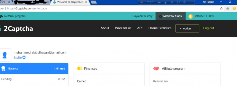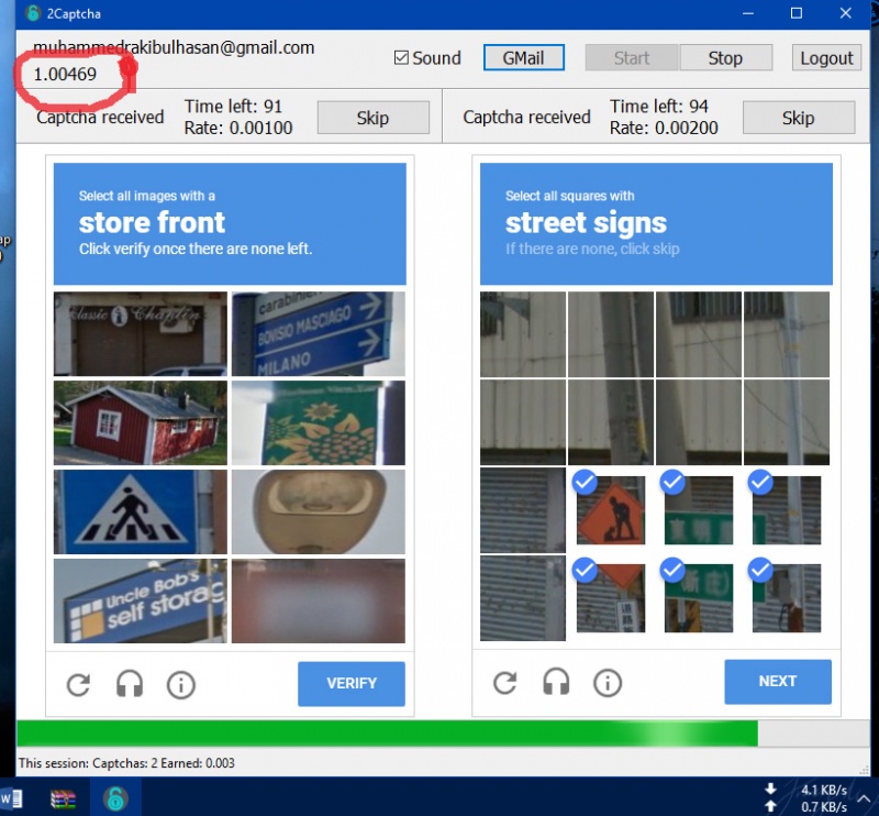 আপনি যতো captcha ভেরিফাই করবেন লাল রং এর বৃত্ত অংশে আপনার ডলার যোগ হবে। লাল রং এর বৃত্তটি আমার বতমান ব্যালেন্স 1$