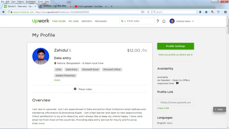 আমরা যারা অল্প বিদ্যার মানুষ আবার সখ অনলাইনে আয় করার তাদের তো ইনকাম হোক বা না হোক একটা ইউটিউব চ্যানেল একটা ফেজবুক আইডি ও আপওয়ার্কে একটা আইডি থাকতেই হবে । কিন্তু মাইক্রোওয়াকে অথবা আপওয়াকে আইডি ১০০ প্রুভ করতে চাইলে টেষ্ট দিতে হয়ে । আমাদের মত মুর্খরা আইডি খুলতে পারলেও টেষ্টে পাশ করা প্রায় অসম্ভব । আমিও অনেক চেষ্টা করে হাল ছেড়ে দিবো দিবো ভাব । একজনকে বললাম ভাই আছে নাকি কোন ভিডিও যেটা দেখে আপওয়ার্কে পাশ করা যাবে । তিনি আমাকে বললেন একজন আছে তবে তাকে ৬০০ টাকা দিতে হবে । বেকার মানুষ কনে এত টাকা পাবো । তাই নিজেই শুরু করে দিলাম । খুব একটা কষ্ট হয়নি মাত্র ১৫ টা টেষ্ট দিয়ে ২ টায় পাশ । আমার কথা অনেকের অবিশ^াস হতে পারে এজন্য আমার প্রোফাইল ভিজিট করুন । লিঙ্ক তো আমার মত যারা এত কষ্ট করতে না চান তাহলে নিচের ভিডিওটি দেখুন । আরামে আপওয়ার্কের প্রোফাইল ১০০ পারসেন্ট করুন ।