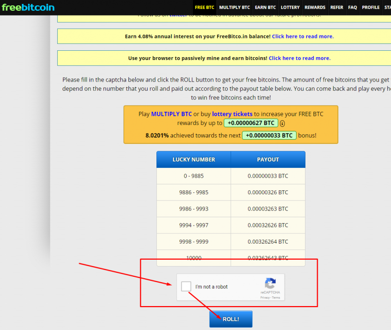 ২। স্ক্রিনসটটি লক্ষ করুন। প্রতি ঘন্টায় আপনি একটা করে ক্যাপচা পাবেন সেটা পুরন করে ROLL এ ক্লিক করবেন।