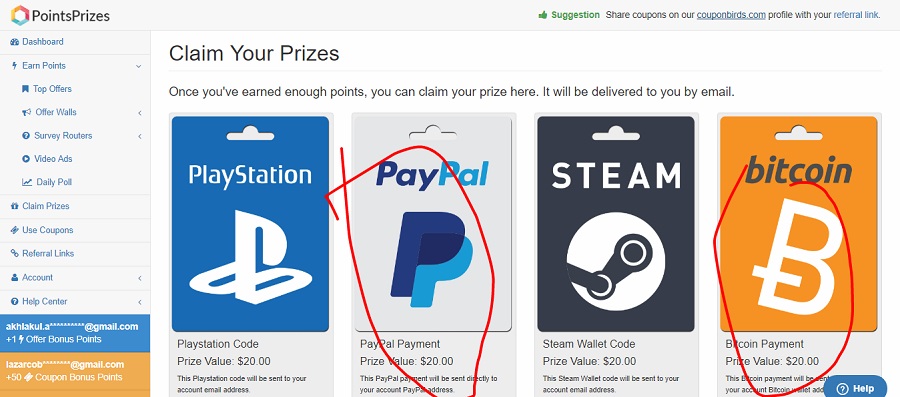 ৩০০০ পয়েন্ট হলে Withdrow দিতে পারবেন। পেমেন্ট Bitcoin, Paypal এবং Gift Card এরমাধ্যমে নিতে পারবেন।