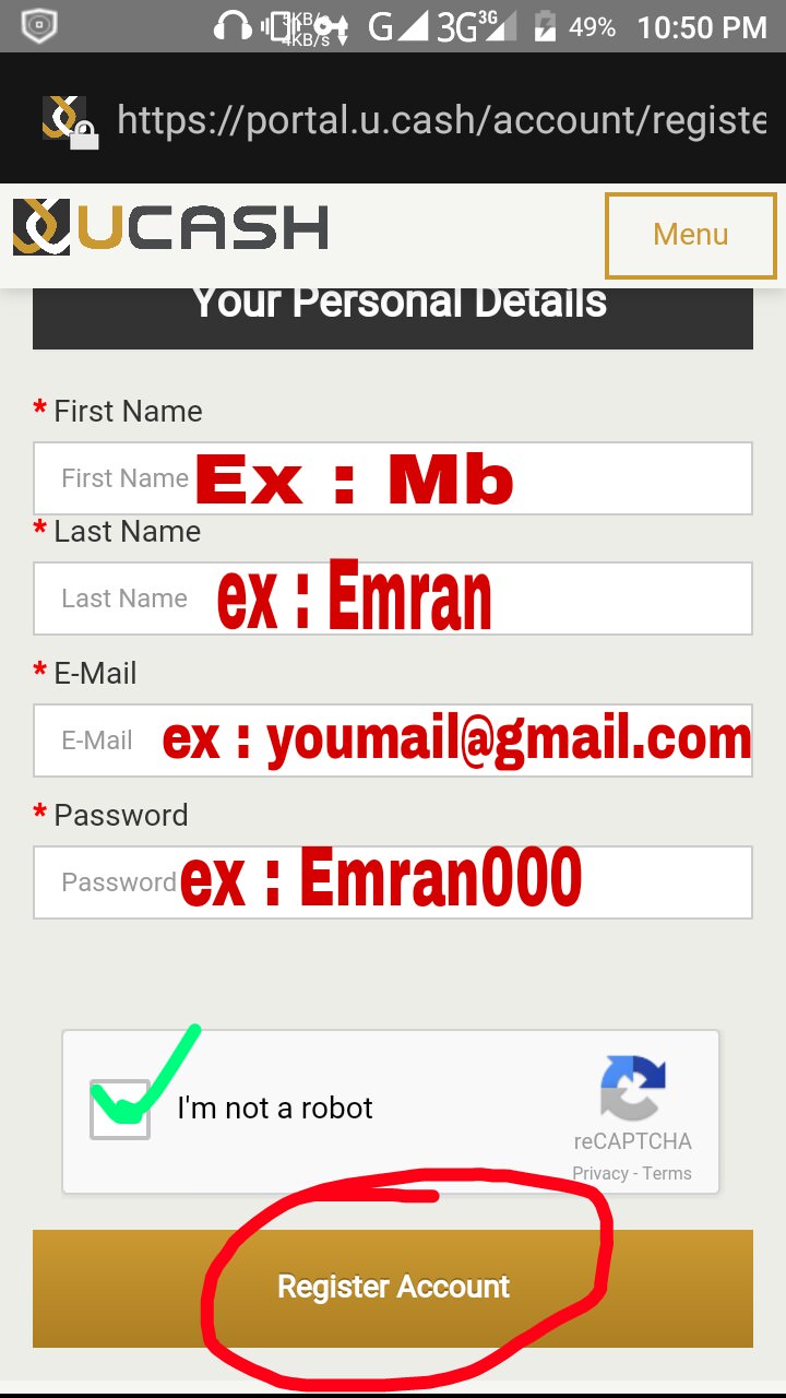 প্রথমে লিংকে কিক্ল করুন Ucash রেজিস্টেশন ফরম পূরন করুন