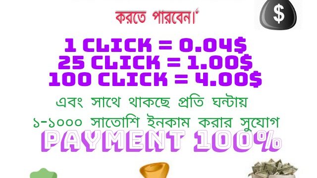 ইনকাম হিসাব : 1 Click = 0.04$ 25 Click = 1.00$