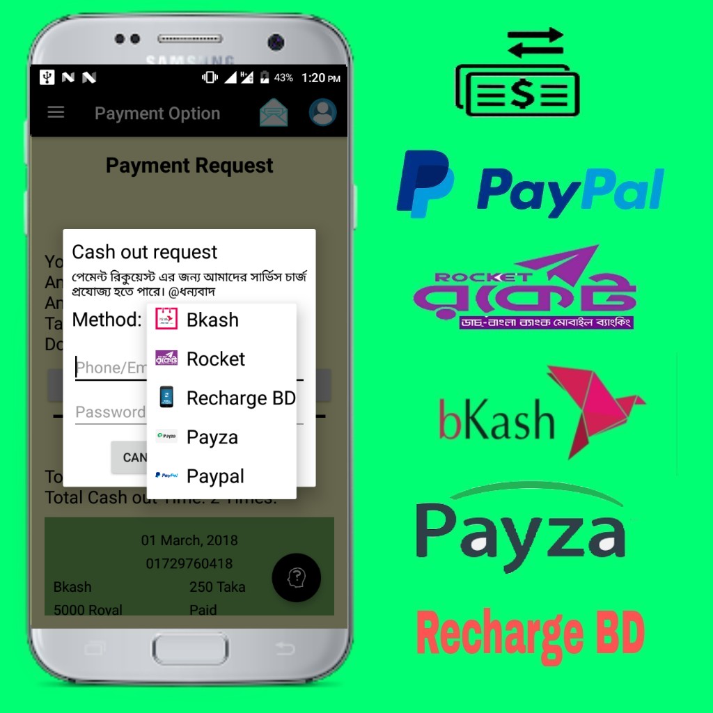 তাদের অ্যাপ থেকে আপনি ৫ভাবে টাকা তুলতে পারবেন। এই স্কীনশট দেখে নিন।