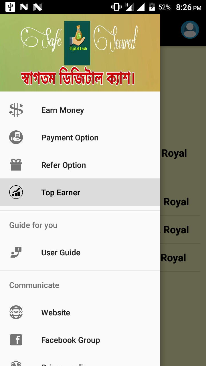 আবার আপনি এই অ্যাপ এ অ্যাপ ইন্সটল করে Royal আয় করতে পারবেন।