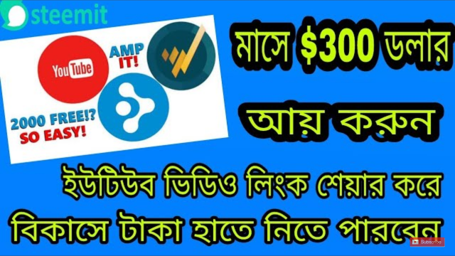 আপনার ভিডিতে ভিউ এর মাধ্যমে আপনি Amp কয়েনগুলো earn করতে পারবেন। 1amp=22সেন্ট ডলার এবং ২৫ Amp coin না হওয়া পর্যন্ত আপনি টাকা Widraw করতে পারবেন না। কিন্তু রেগুলার ভিউ এর মাধ্যমে প্রতি মাসে খুব সহজেই ৩০০ ডলার পর্যন্ত ইনকার করতে পারবেন।