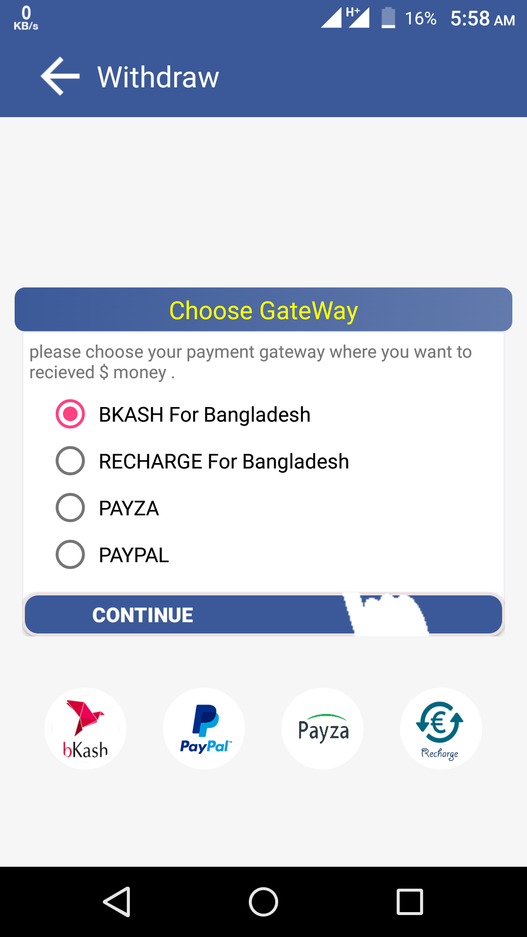 এই অ্যাপের কাজ প্রায় Task Junsoin এর মতো, খুবই সহজ। পেমেন্ট দেয় বিকাশ, মোবাইল রিচার্জ, পেজা ও পেপালে
