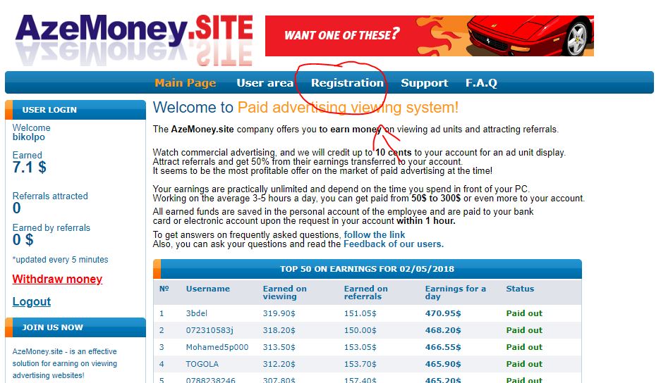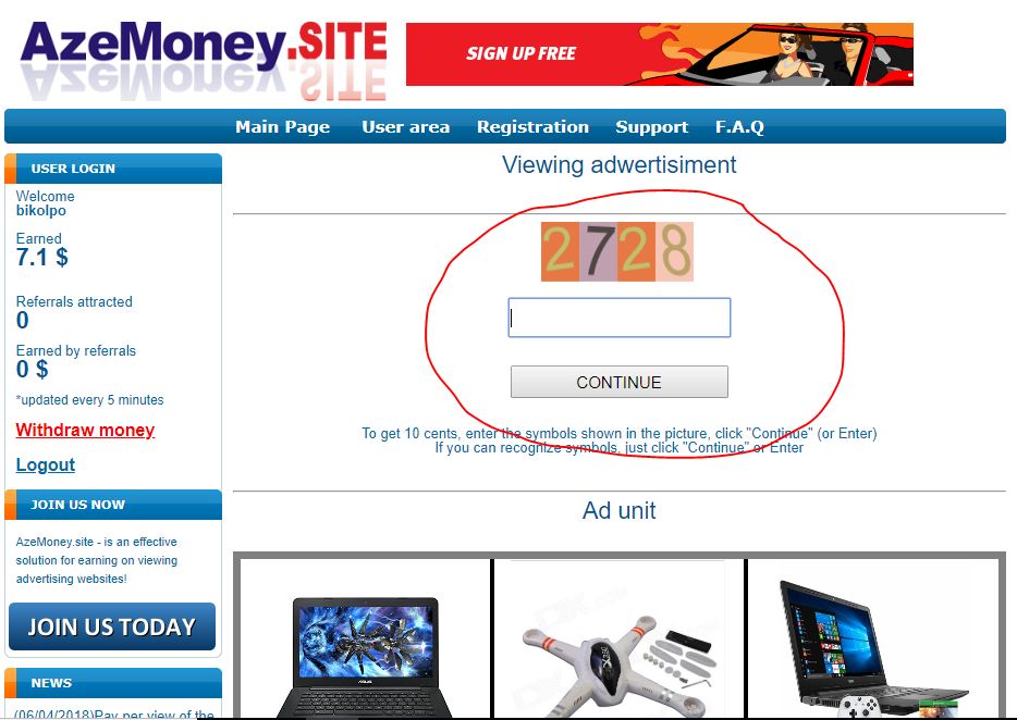 Registration করে user area তে ক্লিক করুন এবং start watchaing payed ads এ ক্লিক করে ক্যাপচা পূরণ শুরু করে দিন আর দেখুন, ১৫০ ডলার হলে টাকা উত্তোলন করতে পারবেন। কিভাবে একাউন্ট খুলতে হয় তা আমি দেখিয়ে দিচ্ছি