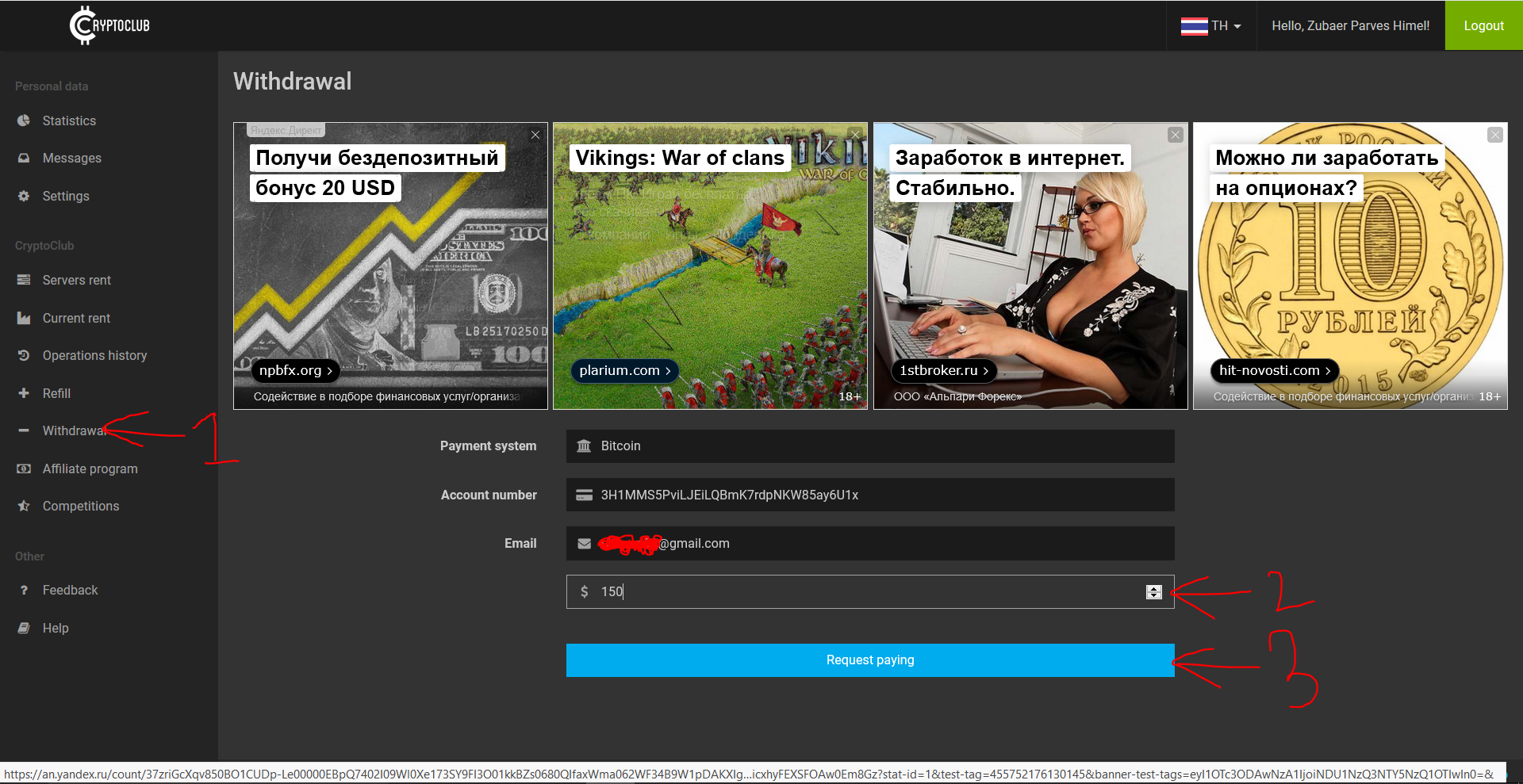 তারপরে আপনার ২ নাম্বারে আপনার এমাউন্ট সিলেক্ট করেন। সর্বনিম্ন এমাউন্ট ১৫০ ডলার হতে হবে। গ্রুপে কাজ করলে ১৫০ ডলার করতে আপনার ৩ দিন সময় লাগবে। তারপরে আপনি ৩ নাম্বারে ক্লিক করে পেমেন্ট রিকুয়েস্ট দিবেন। রিকুয়েস্ট দেওয়ার ২৪ ঘন্টার মধ্যে আপনাকে পেমেন্ট করে দিবে।