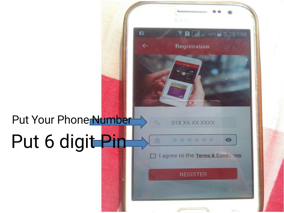 ৩। এরপর নতুন একটা পেজ আসবেও ওখানে আপনি যে নাম্বার দিয়ে NexusPay তে একাউন্ট খুলতে চান সেই নাম্বারটা দিন এবং ৬ ডিজিটের একটা পিন দিয়ে I agree তে টিক দিয়ে Register এ ক্লিক করুন। আপনার দেওয়া নাম্বারে কিছুক্ষণের মধ্যে একটা মেসেজ যাবে ওইটা একাউন্ট ভেরিফিকেসনের ওখানে দিয়ে ভেরিফাইতে ক্লিক করুন।
