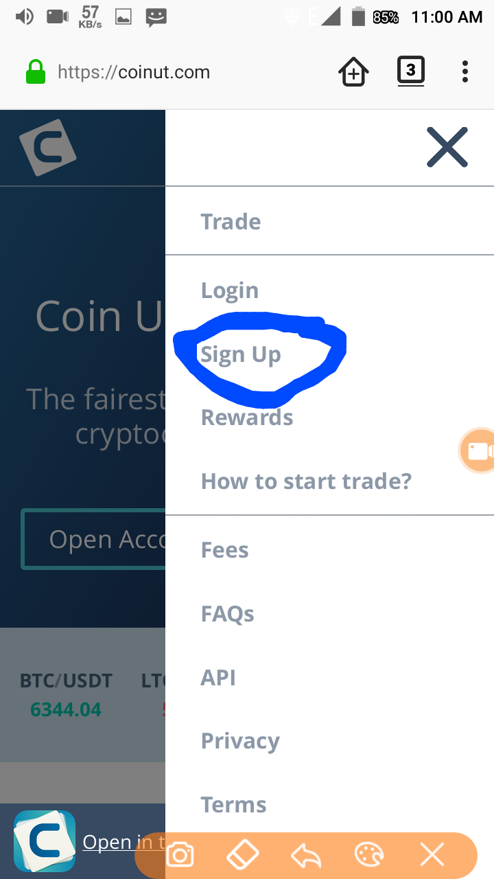 আবার নিল দাগ দেওয়া স্থথানে (sign up) ক্লিক করুন।