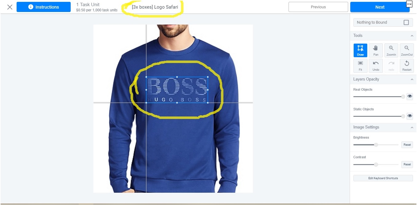 আপনাকে বিভিন্ন ছবি দেয়া হবে এবং সে ছবি গুলো থেকে [3x boxes] মানে সে ছবিতে কমপক্ষে তিনটি বিভিন্ন কোম্পানির লগো Draw করতে হবে।