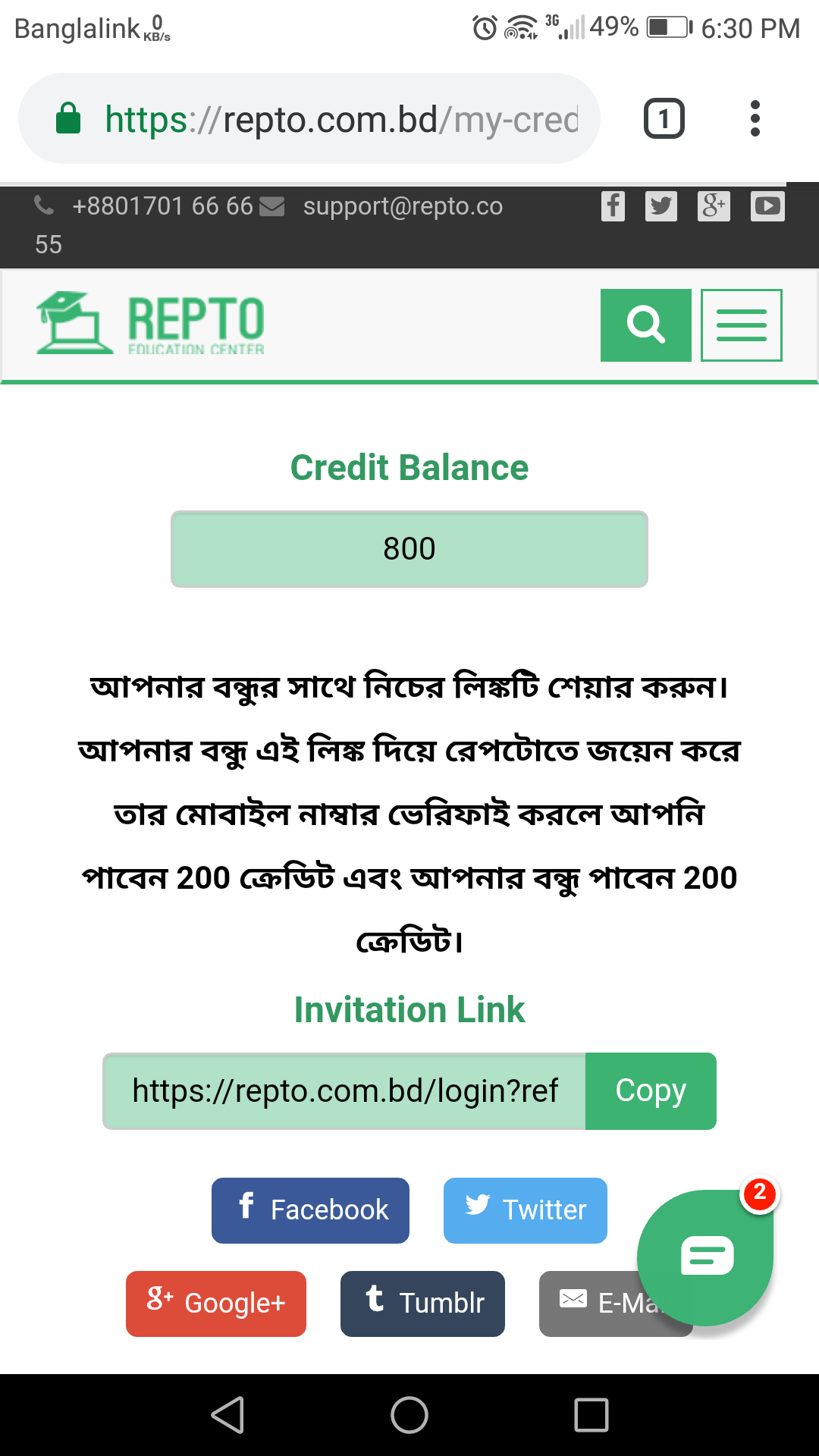 রিফার লিংক পাওয়ার জন্য credit তলে ক্লিক করলেই হবে।