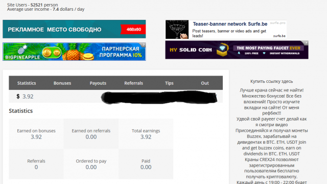 সাইটির নামঃ Bit-Bonus.সাইটিতে কিছু লিংক দেয়া থাকবে.। আপনার কাজ হলো লিংক গুলাতে ক্লিক করা এবং বোনাস কালেক্ট করা। প্রতি বোনাস এ আপনি ০.১০-০.২০ পর্যন্ত ডলার পাবেন। প্রতি ৫ মিনিট পরপর আপনি বোনাস নিতে পারবেন। যখন আপনার ৩ ডলার হয়ে যাবে তখন আপনি উইড্র করতে পারবেন। সাইট লিঙ্কঃ http://bit-bonus.top/?inv=1PCkb8a9pYTWYjLQA2MGepF2thAuhFnkXV এই লিংকে গিয়ে রেজিস্ট্রেশান করে নিন। রেজিস্ট্রেশন করতে আপনার একটা বিটকয়েন ওয়ালেট লাগবে। bit coin wallet creat করতে এই লিঙ্কে ক্লিক করুনঃ https://bitcoinwallet.com
