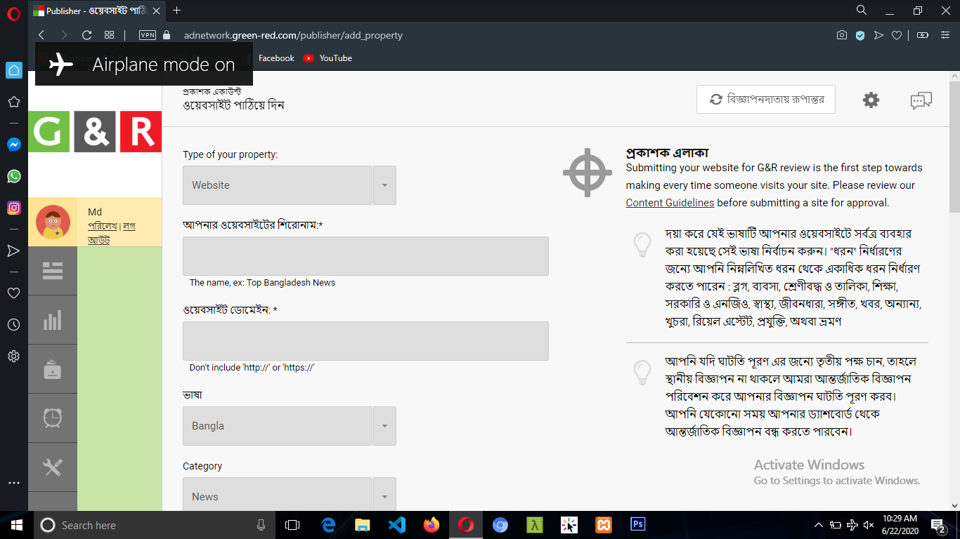 এখানে প্রথমে আপনার ওয়েব সাইট নাকি অ্যাপ সেটি সিলেক্ট করবেন। পরবর্তিতে আপনার সাইটের শিরোনাম দিবেন। অবশ্যই ইংরেজিতে দিবেন। এরপর আপনার ওয়েব সাইটের ডোমেইন বা লিংক দিবেন। ভাষা সিলেক্ট করবেন এবং কি ধরনের ওয়েব সাইট সেই ক্যাটাগরী সিলেক্ট করবেন। এবং শেষে আপনার নাম দিয়ে সম্পত্তি পাঠিয়ে দিন বাটনে ক্লিক করবেন। তাহলে সবকিছু ঠিক থাকলে আপনার সাইটটি যুক্ত হয়ে যাবে। এবং ২৪ ঘন্টার ভিতরে আপনার ওয়েব সাইট যুক্ত হয়েছে কিনা ইমেইলের মাধ্যমে জানিয়ে দিবে। এক্টিভ হলে এখানে আসবেন।