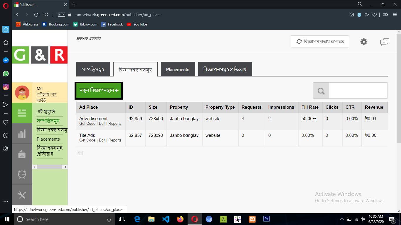 এখানে বিজ্ঞাপনস্থানসমূহ বাটনে ক্লিক করবেন।
