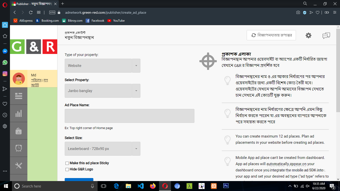 এবং বিজ্ঞাপণ স্থান বাটনে ক্লিক করবেন।