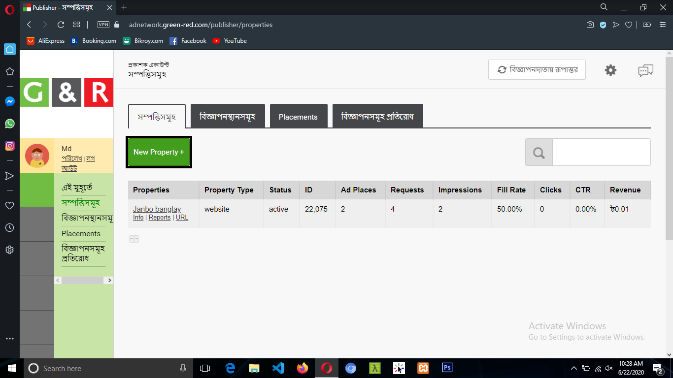 এখানে আপনাদের ওয়েব সাইটটিকে যুক্ত করতে হবে। তার জন্য New Property