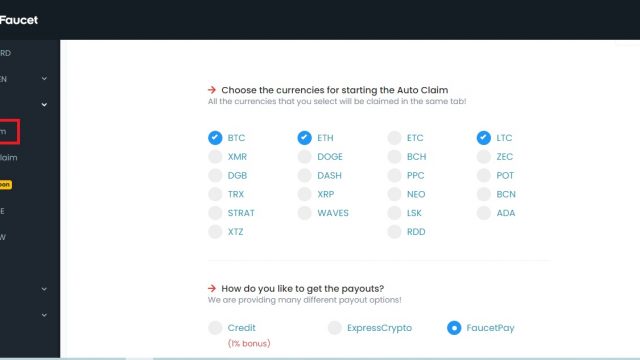 ৫- মজার ব্যাপার হচ্ছে এবার, এবার আপনি FAUCET অপসনে ক্লিক করে AUTO CLAIM এ ক্লিক করেন, তারপর আপনি যেসব ক্রিপটোকারেন্সি মাইনিং করতে চান সেগুলা সিলেক্ট করুন, তারপর ২ অথবা ৫ মিনিট রোল সিলেক্ট করে 4x সিলেক্ট করে মাইনিং স্টার্ট করুন এবং ব্রাউজার এর যে ট্যাব এ মাইনিং করবেন সেটা সব সময় ওপেন রাখবেন। এখন আপনার টোকেন কেটে নেবে আর আপনাকে মাইনিং বোনাস দিবে। পেমেন্ট