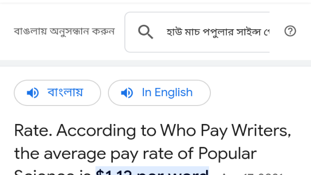 এই সাইটে মূলত ইংরেজিতে বিজ্ঞান বিষয়ক আর্টিকেল লিখে ইনকাম করতে হয়। সাইটের নাম হলো Popular Science. এখানে আপনার আর্টিকেলের প্রতিটি শব্দের জন্য ১.১২ ডলার দিবে। অর্থাৎ আপনার আর্টিকেলটি যদি সম্পূর্ণ কপি পেস্টমুক্ত ইউনিক আর্টিকেল হয় এবং আর্টিকেলে ৪০০ শব্দ থাকে তাহলে তো আপনি খুব সহজেই ৪০০ থেকে ৪৫০ ডলার ইনকাম করতে পারবেন। আশাকরি সবাই বুঝতে পারছেন। এই সাইটটি ১৮৭২ সালে বিজ্ঞান বিষয়ে ম্যাগাজিন প্রকাশ করার জন্য প্রতিষ্ঠিত হয়। কিন্তু ১৯৯৮ সালে এটি ওয়েবসাইট তৈরি করে যার মাধ্যমে দেশি-বিদেশি সবাই এই সাইটে ভিজিট করে। এটি একটি যুক্তরাষ্ট্র ভিত্তিক ম্যাগাজিন সাইট। এখানে প্রতিদিন অসংখ্য মানুষ আর্টিকেল লিখে। তবে সবার আর্টিকেল প্রকাশিত হয় না। যাদের আর্টিকেল নতুন ইউনিক বা কপি-পেস্টমুক্ত ও যুক্তিযুক্ত হয় তাদের আর্টিকেলটি শুধু প্রকাশিত হয়। আর যাদের আর্টিকেল প্রকাশিত হয় তারাই শুধু পেমেন্ট পায়। তাহলে বুঝতেই পারছেন কতটা চ্যালেঞ্জিং।