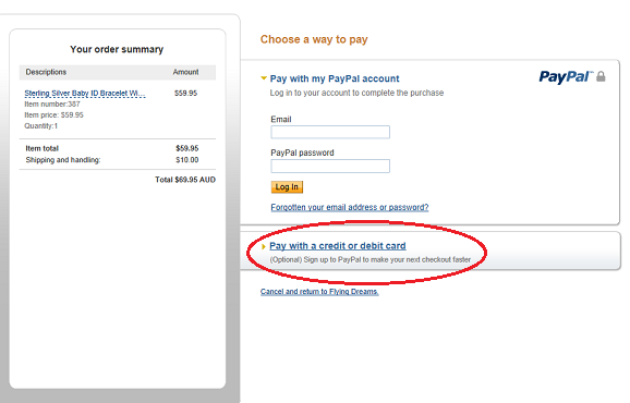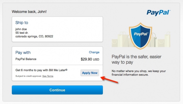 উপরের ছবির মত "Bill Me Later" ব্যবহার করবেন না