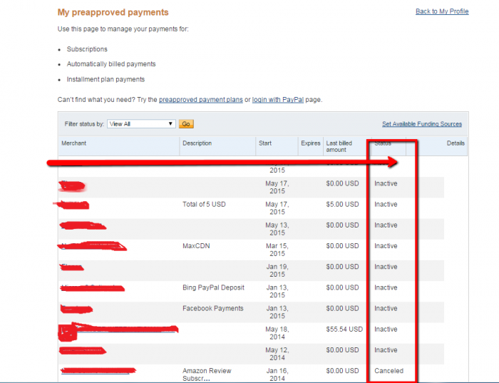 ৮. আমারা যখন কোন ওয়েবসাইট এর মাধ্যমে কোন রিকারিং সার্ভিস বা প্রডাক্ট কিনি তখন ওই সাইটগুলো আমাদের PayPal অ্যাকাউন্ট এ অটোমেটিক রিকারিং বিলিং অপশন চালু করে দেয়, যার ফলে নির্দিষ্ট সময় পর আমাদের PayPal অ্যাকাউন্ট থেকে ঐ প্রডাক্ট বা সার্ভিস জন্য প্রয়োজন মত চার্জ কেটে নেই। যেমন- ডোমেইন/ হোস্টিং এর বাৎসরিক চার্জ। এছাড়াও ইদানিং অনেক ওয়েবসাইট এই কাজটি করছে, যাতে নেক্সট পেমেন্টে ইউজারকে নতুন করে প্যেপালে লগইন করে চেক আউট করতে না হয়। এটাকে PayPal এ "Pre-approved Payment" বলে। এই Pre-approved Payment পেজ থেকে Listed Active Service গুলোকে inactive or cancel করে দিবেন। কারন অটোমেটিক পেমেন্ট করার সময় যদি ব্যালন্সে টাকা না থাকে তাহলে লিঙ্ক করা ব্যাংক বা কার্ড থেকে চার্জ কাটার চেষ্টা করবে, যার ফলে যা হবার তাই হবে।
