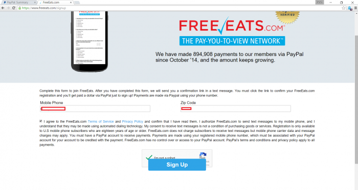 সাইন আপ এ ক্লিক করুন, মোবাইল নাম্বার এর জায়গায় আপনার পেপালে দেওয়া নাম্বার টা দেন, আর জিপ বক্সে আপানার পেপাল জিপ বসান। তারপর এগ্রিমেন্টে ঠিক দিয়ে সাইন আপ করেন।