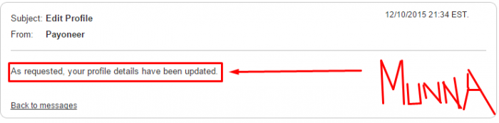 তারপর আপনার Payonner একাউন্টে একটি Message আসবেঃ