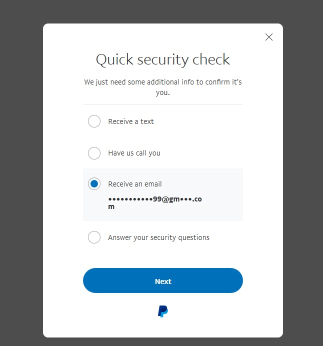 এখন আপনার ইমেইল এ লগইন করে পেপ্যাল ভেরিফিকেশন কোডটি কপি করে এখানে paste করুন। তারপর "Answer your security questions" সিলেক্ট করে নেক্সট বাটন ক্লিক করুন।