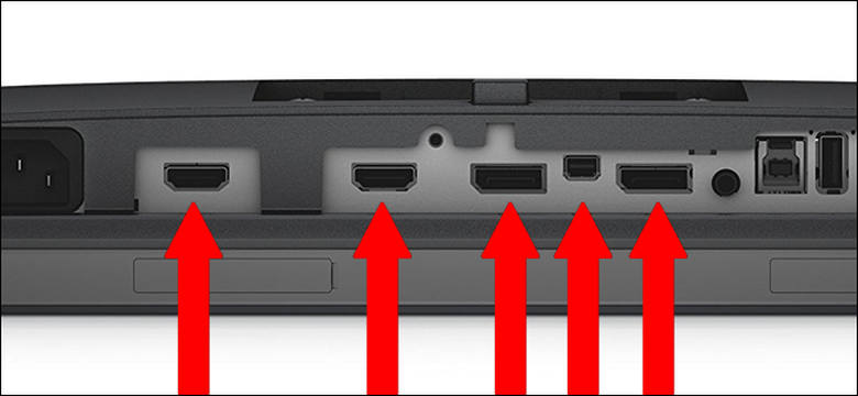 আধুনিক মনিটরে থাকা সমস্ত ডিজিটাল কানেক্টশন গুলো উপরের ছবি থেকে দেখে নিন। বাম থেকে ডান দিকেঃ HDMI, HDMI, DisplayPort, Mini-DisplayPort, DisplayPort।