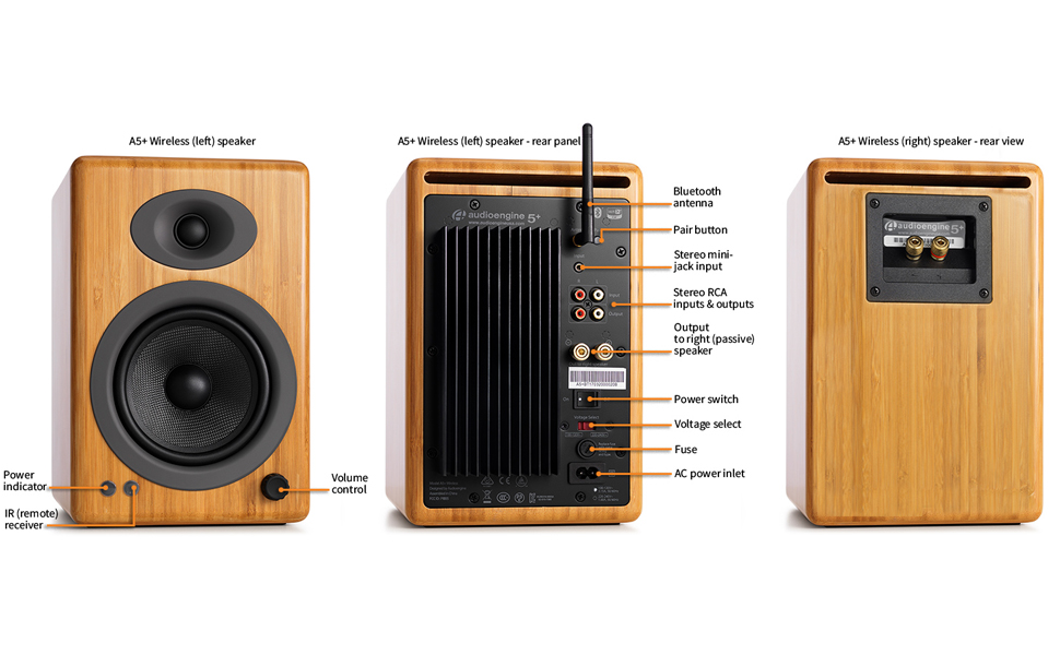 Audioengine A5+ Studio Speakers এর আগে আমাদের সেরা স্পিকারদের রাউন্ডআপে জয়ী হয়েছিল। স্পিকার গুলো 150 পাওয়ারে (চ্যানেল প্রতি 50W RMS / 75W Peak per Channel) বিস্তৃত 50Hz - 22kHz ফ্রিকোয়েন্সি রেঞ্জ বহন করে। কানেক্টিভিটি অপশন হিসেবে আছে, 3.5mm Stereo Mini-Jack, RCA Left, Right input এবং এমনকি আপনার স্মার্টফোন বা ট্যাবলেট চার্জ করার জন্য একটি ইউএসবি