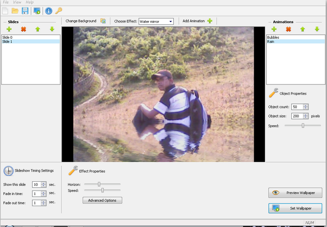 আমরাতো অনেক Animated Wallpaper দেখেছি কিন্তু কখনও নিজে বানানোর চেষ্টা করেছি কি? হয়তো অনেকে পারেন তবে আমার মতো যারা আগে পারতেন না তাদের বলছি আপনিও খুব সহজেই Animated Wallpaper বানাতে পারবেন Animated Wallpaper Maker 2.0.1- নামের এই সফটওয়্যার দিয়ে। এটি ব্যবহার করা খুবই সহজ। নিচের ছবি দুইটা দেখুন। একটা তে আগুন আরেকটায় পানি তাও আবার পানিতে ছায়াও আছে।