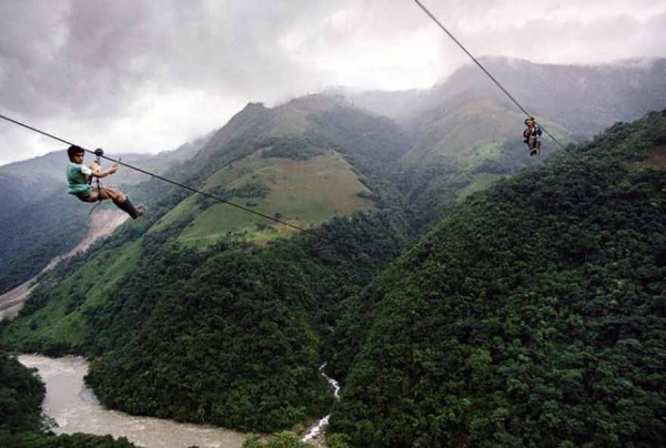 রিও নিগ্রো নদীর, কলম্বিয়ায় একটি স্টিলের তারের উপরে শিশুরা রীতিমত উড়ে যাতায়াত করে!!