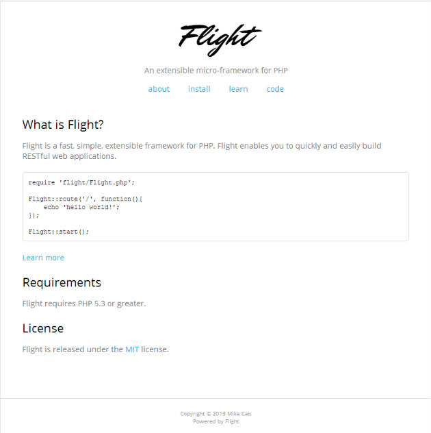Flight হল একটি দ্রুত, সিম্পল, সম্প্রসারণযোগ্য প্রজেক্টের জন্য বেশ কার্যকরী php framework। Flight এর মাধ্যমে খুব সহজেই দ্রুত গতিতে আপনি আপনার ওয়েব application তৈরি করতে পারবেন।