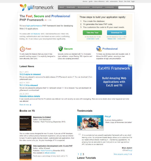 Yii framework, web 2.0 application তৈরির জন্য php এর সবচেয়ে বেষ্ট হাই কোয়ালিটির framework. এই framework এ ফিচারগুলোর মধ্যে MVC, DAO/ActiveRecord, I18N/L10N, caching, authentication and role-based access control, scaffolding, testing ইত্যাদি উল্লেখযোগ্য।