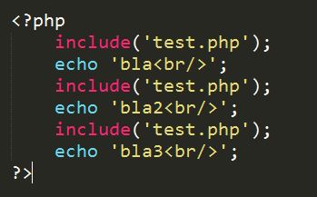 এখন test.php আরেকটি ফাইল আছে যেখানে কিছু কনটেন্ট আছে। এবার webschoolbd.php ফাইলটি রান করান তাহলে ৩ বার test.php ফাইলের কনটেন্ট webschoolbd.php এর আউটপুটে দেখতে পারবেন। অর্থ্যাৎ ৩ বার test.php ফাইলটি include হয়েছে।