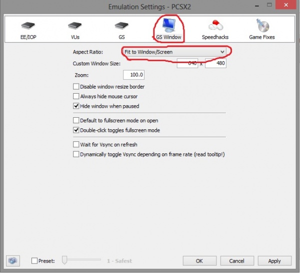 GS Window/Fit to window তে ক্লিক করুন এতে গেমটি fullscreen আসবে।