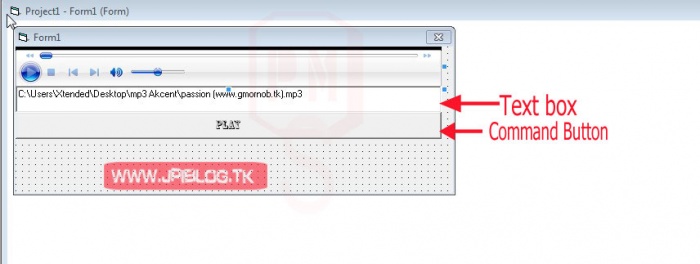 অর্থাৎ একটি Windows media Player , একটি textbox , একটি Command button নিতে হবে । নেওয়া হলে command button এর উপর ডাবল ক্লিক করে নিচের কোড লিখতে হবে ।
