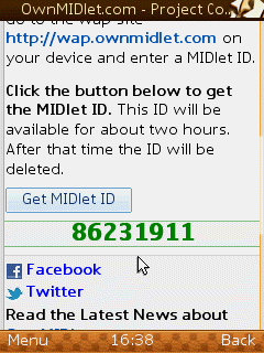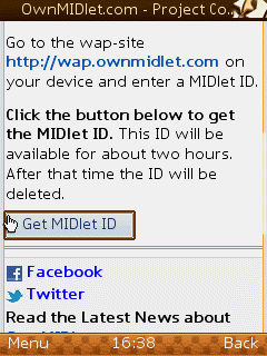তাহলে download to divice এ ক্লিক করুন এবং নিচের চিত্রের ন্যায় যে পেজটা আসবে সেখেন get midlet id তে ক্লিক করুন।তাহলে আপনাকে একটা ৮সংখ্যার একটা কোড দিবে ঐ কোড টা কপি করুন
