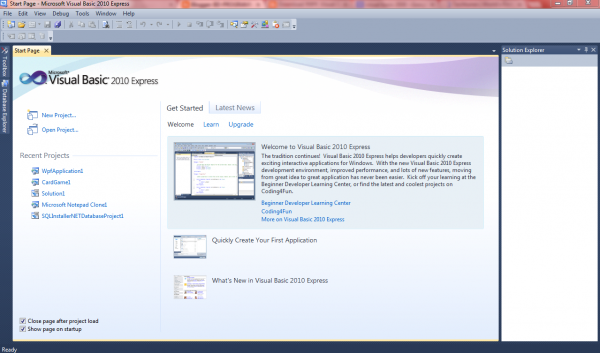 ডাউনলোড শেষে ইনস্টল করার পর Microsoft Visual Basic 2010 Express চালু করুন। (এক্ষেত্রে আপনি যে ভার্সন ইনস্টল করেছেন সেটা ওপেন করে দেখুন।) নিচের মত ইউন্ডো পাবেন।