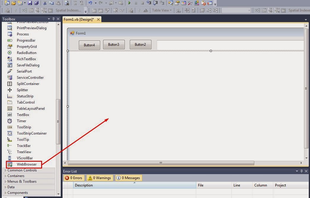 4. 'Toolbox' থেকে WebBrowser টুলটি নিন। নিচের চিত্রে দেখানো হল-
