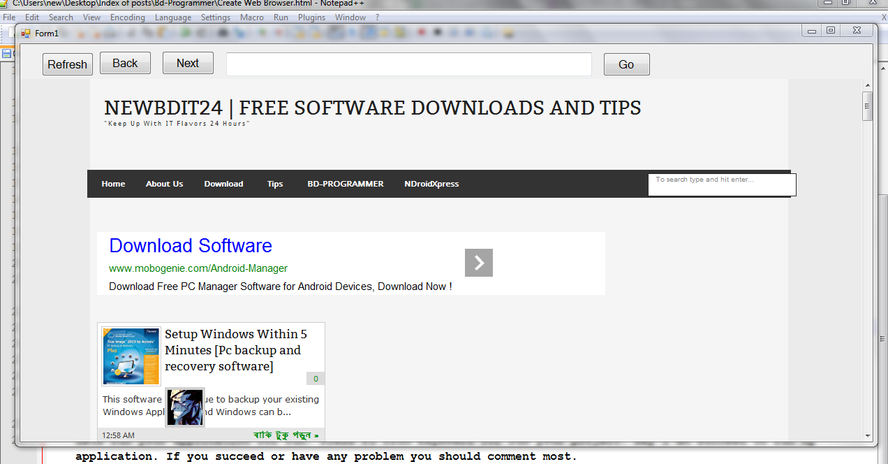 আমি কিন্তু ওয়েব ব্রাউসারটি তৈরি করে ফেলেছি। আপনারা বানাতে পেরেছেন কিনা অবশ্যই জানাবেন। আর সমস্যা হলে অথবা ভাল লাগলেও জানাতে ভুলবেন না যেন কমেন্ট বক্সে......