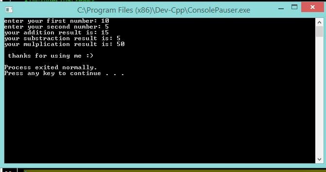 এখন প্রোগ্রামটি রান করলে ডিসপ্লেতে তোমাকে নাম্বার বসাতে বলবে। তো আমি ১০ এবং ৫ বসিয়েছি