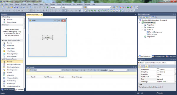 প্রথমেই আমি Toolbox থেকে একটি button টেনে এনে ফর্মের উপর ছাড়লামঃ