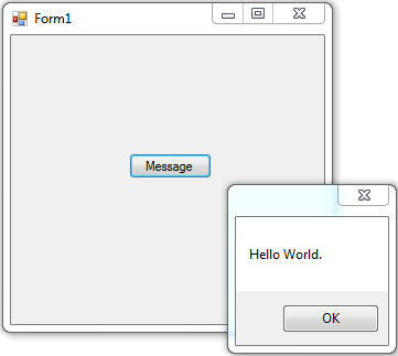 প্রোগ্রামটি run করিয়ে Message বাটকে ক্লিক করলে Hello World মেসেজটি দেখতে পারবেন।